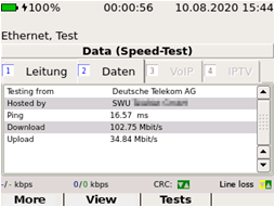 KE3700 / KE3550中激活的所有基于IP的接口都可支持此測試功能,例如xDSL、以太網(wǎng)或SFP。該測試只需按一下按鈕即可運行。